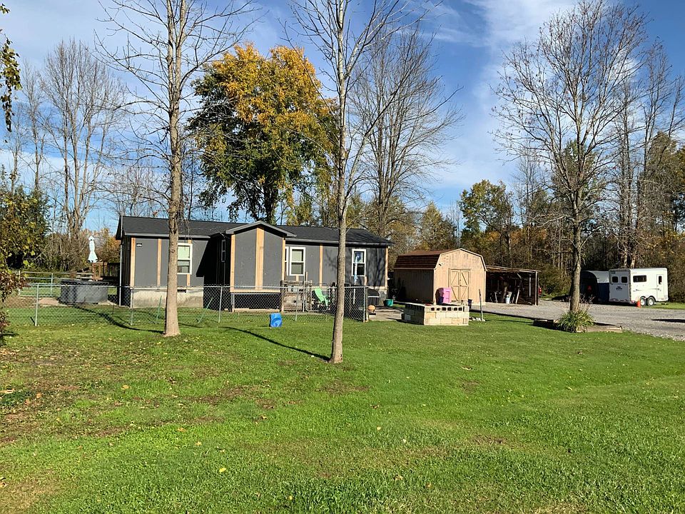 6 acres with 3 Bedroom Country Home for Sale, Canastota, NY! Private Setting for Hunting, Gardens and Animals Near Oneida Lake! 6 acres and country home set back over 500 feet from the main road with serpentine driveway lined with pine trees...scenic approach leading into this homestead. This 1986 doublewide has 3 bedrooms and two full bathrooms, living room, kitchen, mudroom, and small back deck. Many features are newly renovated such as new roof, carpets, flooring, water filtration system, kitchen cabinets and countertop, bathroom showers, vanities and new paint. There is a propane furnace with forced hot air and new coal stove that takes over on any cold winter days. This home is very comfortable with new and fresh feel to all inside rooms. The setting is very attractive with over 6 acres including large grass yard, fruit trees, and scattered hardwoods along the hedgerows where you have about 2 acres open and the remaining 4 acres are heavily wooded surrounded by hayfields. The woods are loaded with deer and turkey along with a nice trail leading into your future tree stand location. You can walk off the back porch and be in your stand or blind in minutes! Every day, you will see wildlife! Other features: Custom built chicken coop. Quonset storage tent. Fenced in backyard for pets. Access to Snowmobile trail. 5 minute walk to Oneida Lake. This 6 acres with country home is perfect for anyone looking to enjoy some privacy away from neighbors where you can have multiple pets, raise livestock, garden, and live off the land and would be an excellent starter home! Location: 5-10 minutes to Sylvan Beach, NY. 10 minutes to Canastota or Onieda, NY. 20 minutes to Rome, NY. 35 minutes to Syracuse or Utica, NY.