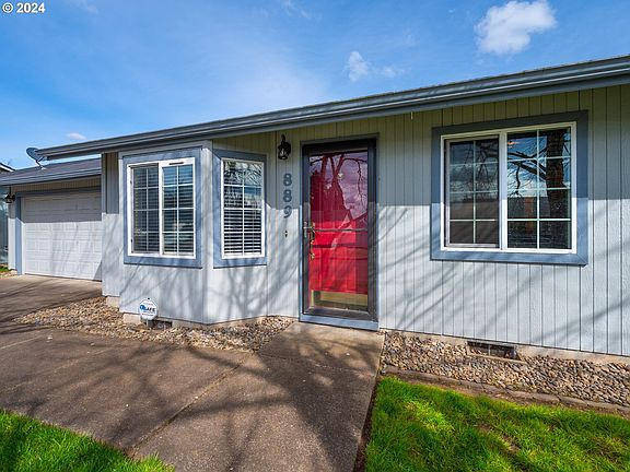 Welcome to this amazing home in an unbeatable location, ready for you to move right in. Situated in a prime area, you'll have schools, community parks, bike/walking paths, and the incredible Willamalane's Bob Keefer Center and Les Schwab Fields just a stone's throw away. Step inside and be greeted by a single-level layout with vaulted ceilings and an open floor plan, creating a spacious and inviting living space. The kitchen boasts solid granite counters, durable LVP flooring, and sleek stainless steel appliances. The primary suite is a true retreat, offering not one, but two closets, including a walk-in closet, sliding glass door to a back deck, and an ensuite bathroom. Open the slider and step out into the East-facing backyard, where you'll find a meticulously maintained yard and a delightful patio, perfect for outdoor relaxation. Need extra space? There's a versatile room that can serve as an office or a fourth bedroom, complete with LVP flooring, a ceiling fan, a closet, and its own separate exterior entrance. The two-car garage is extra deep and even has a convenient garage door that opens up to a carport and shop with power perfect for boat, small RV or extra parking. Updates in the last few years include ductless heat pump, garage door opener, landscaping, fencing, resurfaced back patio, sprinklers in front and back yard & more. VA Assumable loan @ 2.375% at approx. $309,000 **VA ASSUMABLE LOAN TO BE EXTENDED TO VETERANS ONLY** Open House Sat 5/11 1-4pm