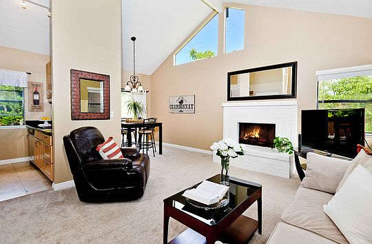 Beautifully renovated move in ready condominium in great commute location! This end unit has two bedrooms and two updated baths. Kitchen remodeled with stainless steel appliances and granite counter tops. Light and bright living room area with vaulted ceilings and a cozy brick fireplace. Master suite with great views of surrounding Redwood trees and in unit laundry. Close to freeway access, shopping, and restaurants. $386 HOA fees include community pool and tennis court.