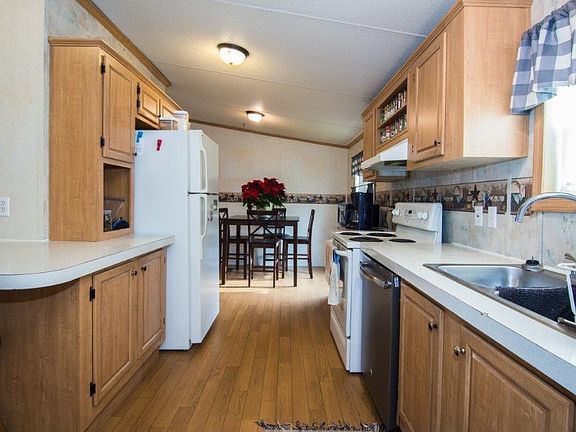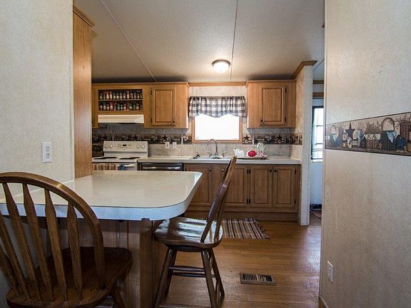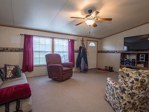 Great Value!! Cozy ranch style manufactured home on a permanent foundation with lots of upgrades. Cathedral ceilings, open floor plan, with a wood burning fireplace, this is one you don't want to miss. Great location on over an acre of land with a nice storage building. Schedule your showing today! Home is in the 100 year flood plain and will most likely require flood insurance.