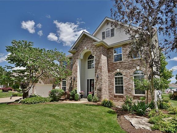 Winghaven Golf Course Views, Amazing 4 bed/4.5 bath brick-front 2-story residence featuring 9' main floor ceilings, crown molding & many updates main/upper carpeting, granite counters, master shower & interior paint. The open floor-plan offers an oversize entry foyer, formal dining & massive great room + bright & inviting eat-in kitchen with 42" custom cabinetry, center island, breakfast bar, stainless appliances, breakfast room & adjacent sitting/sun room with a cathedral ceiling & walk-out to the private patio & level yard backing to the 8th tee Jack Nicklaus Golf Course. Luxurious main floor master suite offering a walk-in closet & private full bath with double vanity, garden tub & walk-in shower. The upper level features a large central rec room + 3 big bedrooms w/ 2 full baths (1 in-bedroom & 1 Jack-n-Jill). Expansive finished lower level adding a family/media room with wetbar, 2nd rec room, den & full bath. Spacious 3-car garage! Crossroads, Frontier Middle & Liberty High Schools
