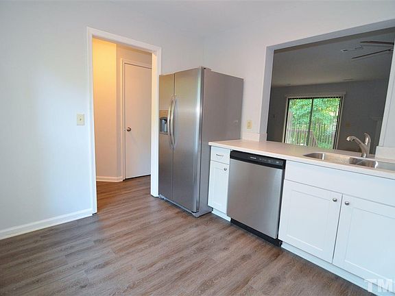 Beautifully Renovated Townhome in Great Raleigh Location! Light and brightkitchen with new stainless steel appliances & space for a table has large passthrough to living room. Spacious living room with sliding doors to private deck thatoverlooks wooded area. New easy care laminate flooring on first floor & new carpetupstairs. Half bath on first floor. Outdoor storage closet. Close to DowntownRaleigh & North Hills. 1 small-medium dog permitted. $30 monthly pet fee.