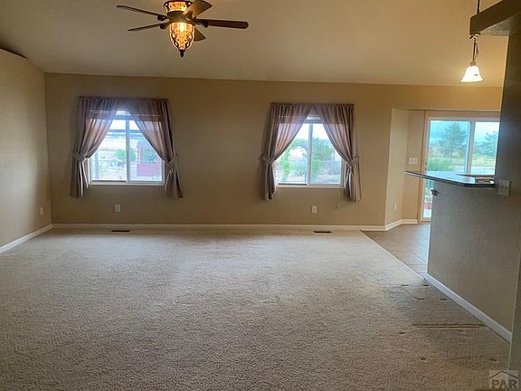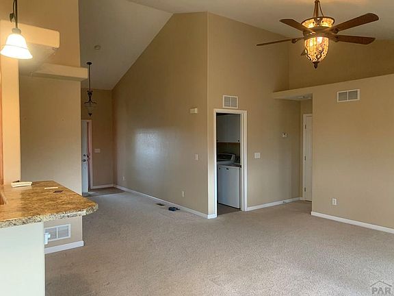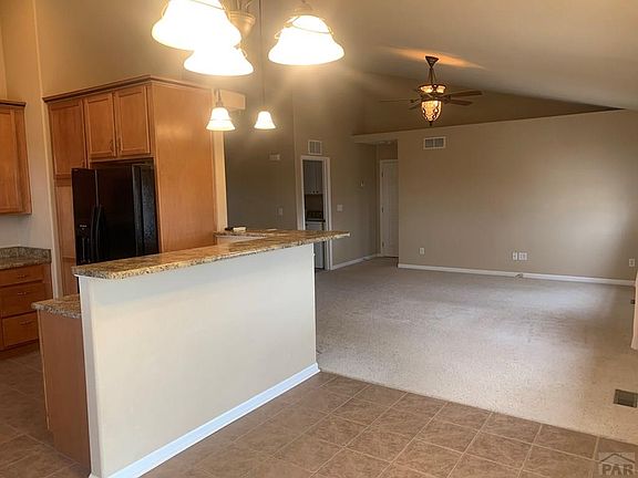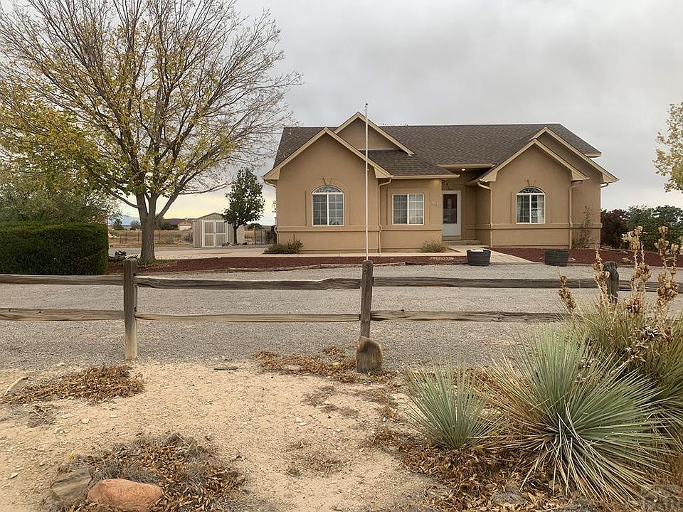 Beautiful well cared for rancher. Large tiled entry with vaulted ceilings! .Large Nice kitchen, lots of cabinets with crown molding and rope accents , plant shelves, and a wrap around bar for additional seating that shares the dining area with New Vinyl Sliding glass door!!! Split bedroom design and a separate Nice laundry/mudroom!! Landscaped yard with fencing and cross fencing. Areas for dogs, animals, garden and enjoyment. 10x8 shed for storage plus 2 stall mini horse barn , birdhouses nestled amongst trees and on posts. 2 car side entry garage with shelving, storage and workbench. 12x32 cement patio and Nice landscaped yard to Enjoy views of Pikes Peak, city lights,sunrise & sunsets.,. Garage is insulated & has lots of storage and workshop area. The exterior of home has all new Lastomatic Paint.