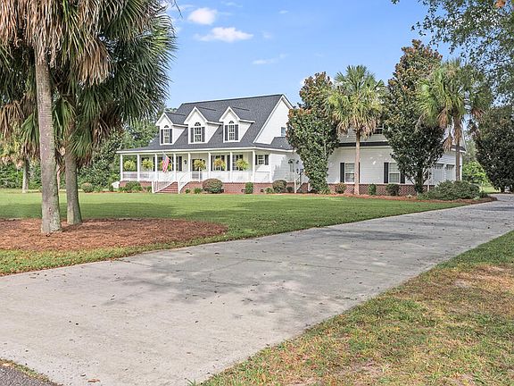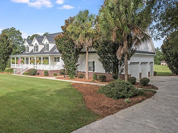 Beautifully updated farmhouse on 4.4 acres with brand new roof! Welcome home to this amazing property of over 3000sf with a long front porch, perfect for sipping your morning coffee and enjoying lowcountry evenings. This 4 bedroom and 3.5 bathroom home is unique and spacious. When you enter the home, you are greeted with refinished hardwood floors and high ceilings that lead you into open-concept living. Off the foyer you'll find a formal living room/office and a half bathroom for your guests. Head into the kitchen where you'll see stainless steel appliances, black stone tops, ample white cabinets, recess lighting, and a picturesque window over the sink looking over your sprawling acreage. The kitchen opens to the family room which is cozy with a fireplace.Step off the family room onto your expansive screened porch with stairs down to the patio for grilling and entertaining. The master bedroom can be found on the main level with a bay window, spacious sunroom, and brand new carpet. The master bathroom has 2 sinks, soaking tub, separate shower, and leads you to the massive walk-in closet with more than enough space. Oversize laundry room is conveniently located on the main level. Head upstairs where you'll find 3 additional bedrooms (2 with new carpet), more walk-in closets, and another 2 full bathrooms with tub-shower combos. Move outside and explore your massive 2 car garage, large enough to hold your golf carts, ATVs, or any other toys! Above the garage, find a massive attic space with more than enough storage space. You'll find another shed in the back pasture for all of your lawn equipment and tools. This home has so much to offer with the acreage you have been looking for! Schedule your showing today before it's too late!