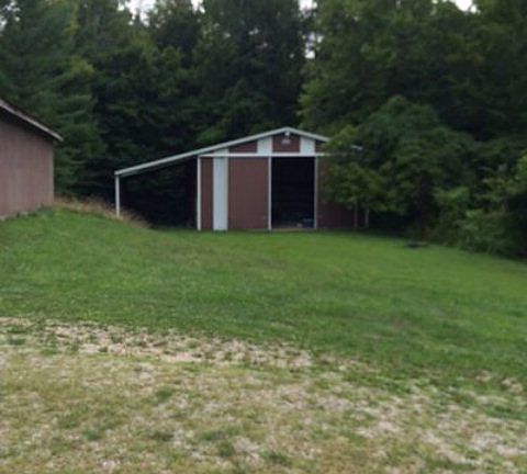 A-Frame on 4.83 acres with 36x44 pole barn with a 16x44 lean-to attached and a 24x30 garage. Walk-out basement partially finished and could have 1 t0 2 more bedrooms or a family room. 30 feet easement drive from Massie Run Road. Children can meet Paint Valley buses at county line just a few miles down the road or they can go to Waverly Schools.