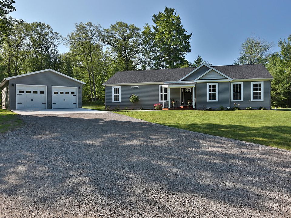This is a newer construction one owner home ''tucked in'' behind the Woodline on 4+/- acre parcel. 3 bedroom, 2 full baths, features spacious living space with 9' ceilings, walk-in closet, covered front porch, rear patio, heated pool and 2 car detached garage. Located just west of Mio having a country setting & feel but close to the school, trails, federal forest, and The Ausable River... Direct state highway access...generator ready.
