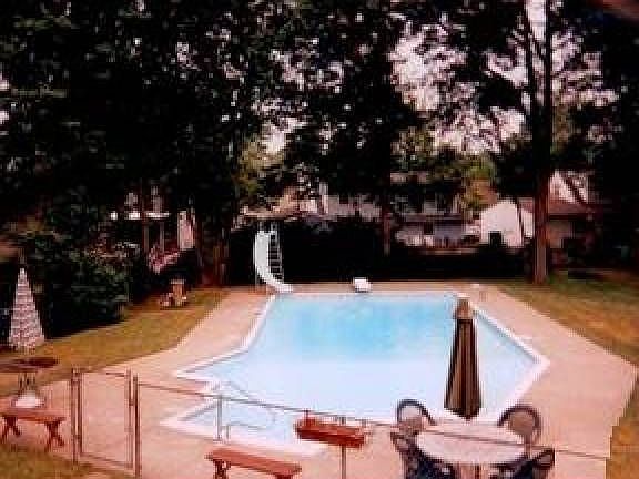 Lovely Custom Built 5 bedroom, 2.5 bath Colonial home situated on .69 acres of professionally landscaped property. Features include a spacious living room with beamed cathedral ceiling and gas fireplace, banquet size formal dining room with full bay window, modern eat-in kitchen with peninsula and additional dining area, hardwood floors, stainless steel appliances with double wall oven and electric cook top, 2 pantries and built-in desk with additional cabinets. The large 20' x 20' family room with another gas fireplace and beamed ceiling is perfect for large gatherings and offers a lovely screened-in porch which overlooks the beautiful property and built-in pool. The first floor master suite boasts a full tile bath with stall shower and two closets, one is a large walk-in. Oversized 2 car garage with electric eye plus lots of parking space and so much more. Amenities include central air, central vac, hardwood floors, a full house fan, intercom, sprinklers and two patios.