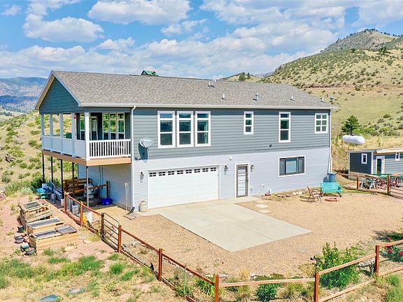 FABULOUS location! Close-in X-Bar 7, less than 1 mile off paved road. NEWER home on 9+ acres w/ 500' of Little Thompson RIVER Frontage. Awesome VIEWS of the foothills & valley from every room! Tons of space inside & out. EZ to add a 3rd Bed/Bath/Family Room in the WALKOUT basement. Bright, open floorplan; spacious kitchen w island, double ovens, & HUGE walk-in pantry. Sweet COVERED PORCH complete w composite decking. Garage boasts 600 SF, RV parking plus storage shed. Create your own trails, beachfront, private park. Live close to town while enjoying the privacy & beauty of Colorado every day. Close to Boulder County Open Space Trails, St. Vrain River, Planet Bluegrass, Downtown Lyons Shops & Restaurants, Schools & Bus; Near Rocky Mountain Nat'l Park & National Forest. Less than 10 mins to Lyons; 30 mins to Boulder and Estes Park. If you're looking for your own private yet convenient retreat, check this one out.