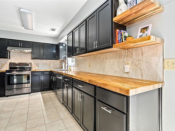 Butcher block countertopsBrand-new cabinetryRecently renovated kitchenModern security system