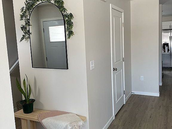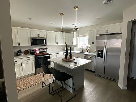 New town home built in November 2021 in new development! 4 bedroom, 4 bath home. Features master suite, large pantry, laundry by bedrooms, trendy kitchen, finished basement, mudroom, barn doors, detached 2 stall garage and sod yard. Washer and dryer included.