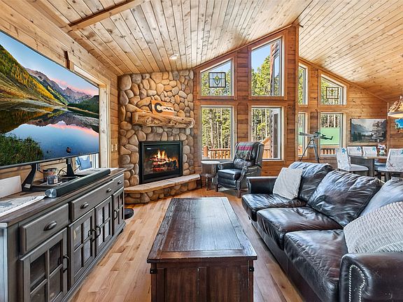 $10K SELLER CONCESSION with an acceptable offer. Tucked among the pines on a serene 2.12-acre lot, this charming Fairplay cabin offers the perfect blend of mountain character and everyday comfort. With 3 bedrooms, 3 bathrooms, and two spacious living areas, there’s room for everyone to unwind. Warm tongue-and-groove walls and ceilings add rustic charm throughout, while an attached garage and additional detached garage provide ample storage for all your mountain toys. Enjoy the peace and privacy of gently sloped land, a fenced dog run for your four-legged friends, and easy year-round access—just 0.8 miles off pavement. Located only 35 minutes from Breckenridge, this is your ideal mountain home!