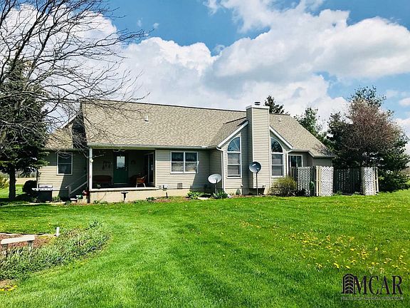 Beautiful ranch on over 5.75 acres with a 30x40 Barn! Concrete and electric in barn. Home has a nice open floor plan with a large eat in kitchen, Living room is great for entertaining, impressive fireplace and cathedral ceilings. 3rd bedroom is also used as an office. Full basement with daylight window. Covered rear porch is great for setting outside viewing the beautiful property. Lots of nice elbow room!!
