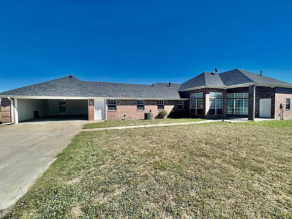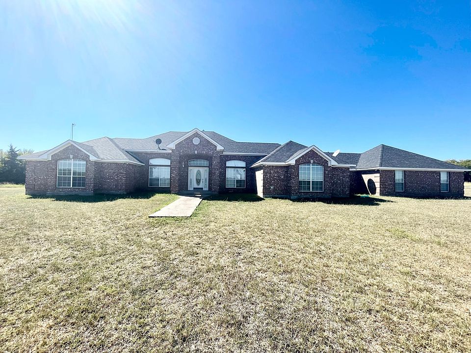 Prime highway 82 frontage. Custom home with spacious living areas and eastern sunrise views overlooking 35+ acres, provides a serene haven for all walks of life.Rolling topography includes two ponds, mature trees, and a barn with a corral, chutes, and gates. Approx. 30 mins. from Lake Texoma, and approx. 5 miles from growing City of Sherman. OUTSIDE CITY LIMITS!Home is 3 bed & 2 bath, additional office or bedroom, and 20 ft ceilings in common areas. First bedroom has a reinforce steel closet for storm shelter, and air conditioned oversized 2 car garage. New floor,new garage door opener, roof, gravel driveway and recently installed AC system '20 & '21.Come to see it, you will love it. RENT LEASE DOES NOT INCLUDE LAND