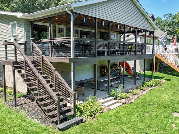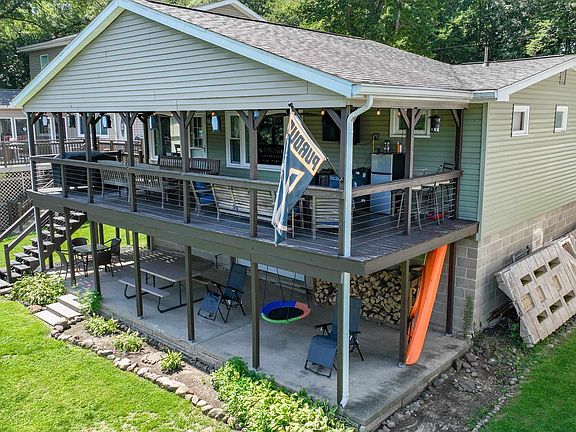 Welcome to the epitome of lake life on Lake Shafer. Hidden in calmer waters on the northern end of the lake, 10 minutes from main lake, sits this year-round home w/ guest quarters. Outdoor entertainment amenities include a 12x36 covered deck, 12x36 covered concrete patio, masonry block fireplace, permanent-electric boat lift with party deck/slide, and large lake-level yard. Other exterior features include a steel seawall, jetski lift, and brand new oversized concrete driveway which fits 10+ vehicles. The comfortably updated interior boasts a cozy ambiance with features including a spacious open-concept, abundance of lake side windows, real wood accents, vaulted-beamed ceilings, newer appliances and fixtures, and newer floors. Secluded on a dead-end road, surrounded by a great neighborly community. See it today and spend the last months of summer 23' on the lake! **The boat house had a tree fall on it, insurance was claimed and issued, replacement scheduled for September, buyer is welcome to continue with replacement as scheduled or take compensation of equal equivalence.**