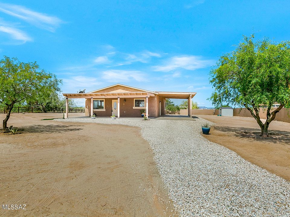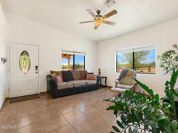 Fabulous 3 Bedroom, 2 bath single family home built in 2007 has been immaculatelymaintained. Serene setting nestled on an acre of fenced gorgeous flat usable horse property. USDA financing available = no $ down! This open great room design is ideal for entertainment or relaxation with soaring ceilings and ceramic tile. Deluxe kitchen offers abundant cabinetry. Generous sized owner suite features walk in closet. Enjoy privacy with glorious mountain views, lush mesquite trees and views of Kit Peak Observatory. 30x50 feet slab has been poured with 9 inch thick cement for garage/workshop. Delight in the desert beauty and sunsets from the expansive covered patio. Plenty of room to roam and bring RV and toys. No HOA. Opportunity knocks here. Come see the possibilities.