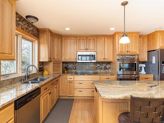 Wonderfully maintained home nestled in a private setting perched above the city of Monticello. This 3 bedroom, 3 bath home had extensive additions and updates in 2011. You will love the gorgeous, open kitchen with beautiful hickory cabinets, granite countertops, center island, stainless steel appliances that include double oven. Other home features include: huge dining area, geothermal heat/AC, large master bedroom w/walk-in closet & lovely master bath, main floor laundry, vaulted ceiling, fireplace, 6 panel doors & bamboo flooring that provides durability and beauty. The property has been professionally landscaped to take advantage of the natural surroundings. Sit by the fabulous firepit and enjoy the tranquility of nature.