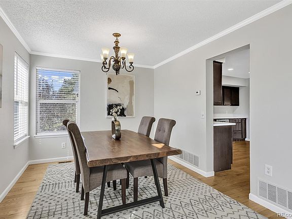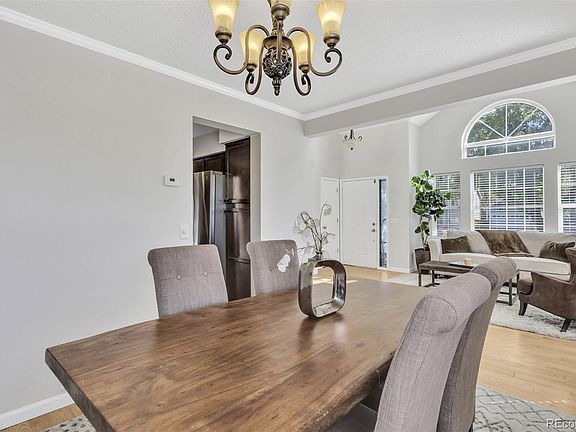 Interior has vaulted ceilings at the entry and an open, sun light filled layout. The main floor Hardwoods were recently restored to all their luster. Interior of the home received fresh paint and new carpet was recently added. Two new appliances in the kitchen are included in the sale and come with the manufacturers one year warranty. There is a very large dedicated dining room that can seat up to eight people for those holiday gatherings! It has on-suite five piece bath room, wooden privacy blinds, and a large walk-in closet. Also, There is are 3 bedrooms on the second floor with Fresh Paint & new Carpet. They are centered upon a restored bathroom that has a gray shaker cabinets, new Granite, faucets, and upgraded lighting. The lower level family room has a working fireplace which is perfect for those cold Colorado nights. Step outside the sliding glass door and walk onto your 2 level wood deck that was Recently painted. Imagine hosting a bbq for friends while being able to enjoy the next door park! Laundry room design is convenient for those muddy days when coming in from the garage. The furnace was recently cleaned and serviced. The Roof comes with a three year certification. Buy this home with confidence! The property is within the desirable Highlands Ranch school district. Outside, the meticulously maintained yard has four flowering trees and a mature ash tree providing shade and beauty year-round. The schools in the area are a 10 out of 10! Access to South Suburban Recreation Centers or Highlands Ranch Senior Centers as based on location. Highlands Ranch High School is a 1/2 a mile from this home.