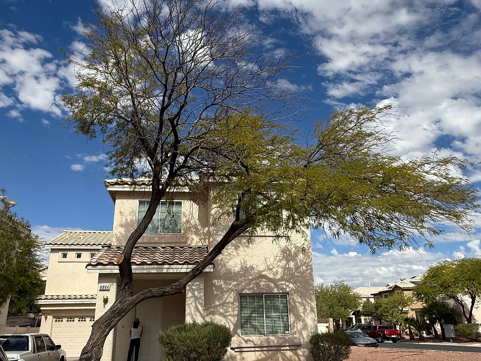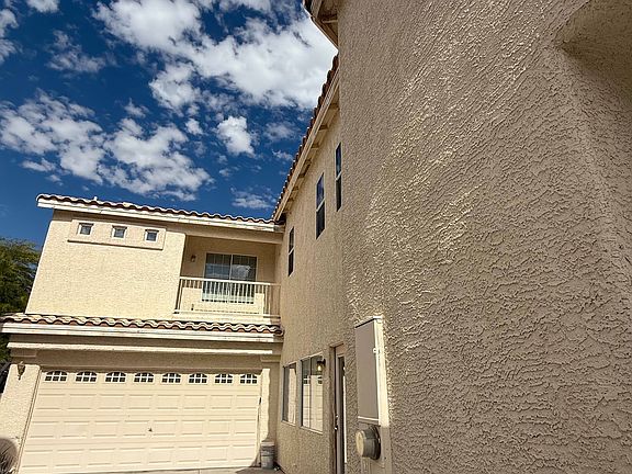 Corner property near Blue Diamond and Durango. Freshly painted with beautiful new flooring throughout. 2 levels 2 car garage. Extraordinary Master Suite with a balcony and two walk in closets. Great finished backyard space. Great neighborhood in an exclusive gated community with a swimming pool and health club. Hard wired stereo speaker system in the entertainment area. Renter's pay electricity, water, gas. Owner will pay Sewage, Trash HOA fess. HOA is quite strict about the parking of recreational vehicles and use of common area space and what may be left in view. First month rent, last month's rent and a security deposit equal to one month's rent are required prior to move in