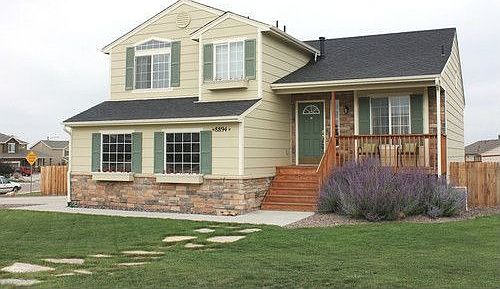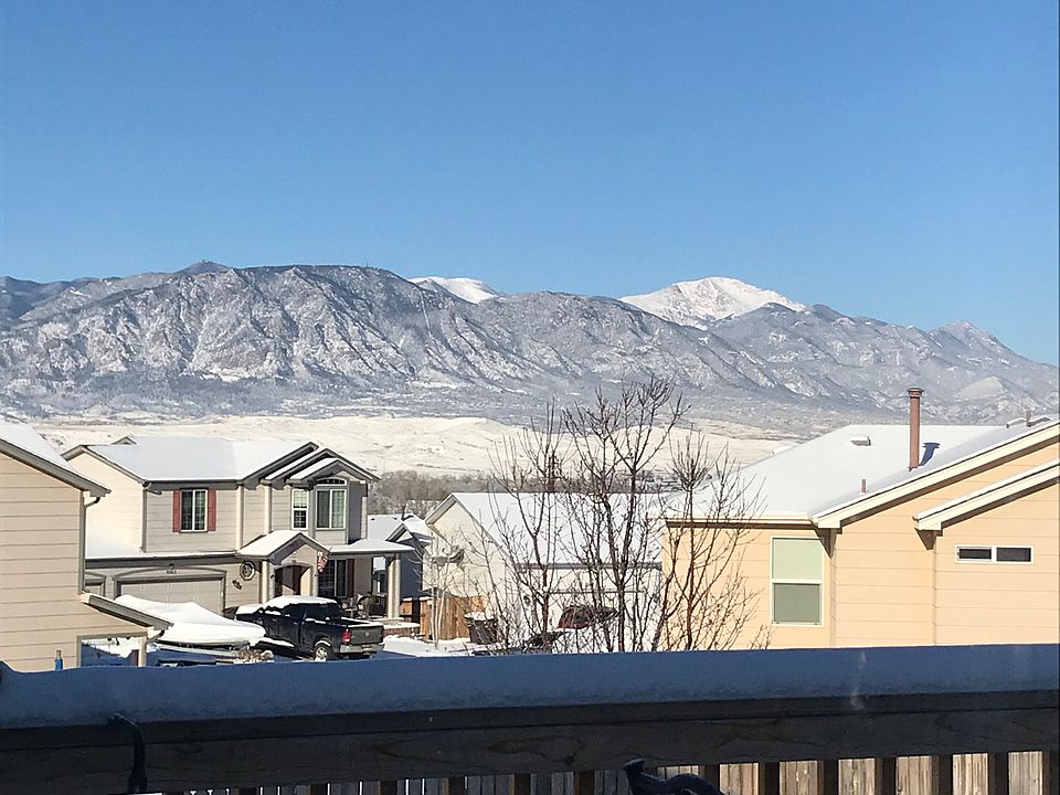 Beautiful 4 Bedroom Home on Corner Lot with Great Views! Hardwood floors throughout main level. Berber carpet on upper & lower levels. Kitchen boasts tiled counters/backsplash, island & pantry. Upper level 3 beds. Master w/private 5pc bath & walk-in closet. Lower level family room w/gas FP, 7.1 surround sound & walkout to rear yard. Finished basement w/4th bed, bath & laundry. Large lot & uninterrupted mountain views from rear deck. Right across from elementary school & minutes from Ft Carson.