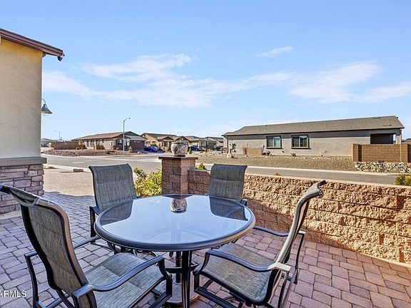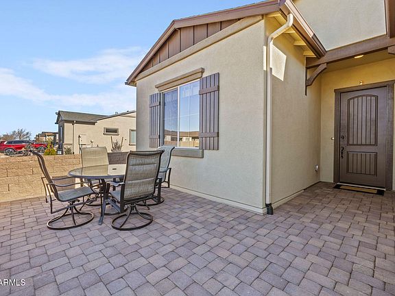 Panoramic unobstructed views of Mingus Mountains & acreage horse properties on rare oversized lot. 2BR + Office/Den & 3 Car Garage.Shows like a model. Farmhouse style Marigold floorplan w/high style upgraded design extras & 10 foot ceilings! Gourmet kitchen with gas range & stainless appliances. Entertain with forever views from formal dining, great room and office. Office could be BR 3. Wood look ceramic tile thruout w/luxury carpet in bedrooms. Pro landscaping w/grass & flowering bushes. Watch sunsets from front paved patio! MUST SEE SIDE YARD w/ RV gate & 50' paver parking. IDEAL SETUP FOR LOADING/UNLOADING RVs. 3CG+addtl parking for 2+ vehicles behind gate. Access side parking thru garage service door. Long term covered RV parking in community for est. $100/mo. See it now!!