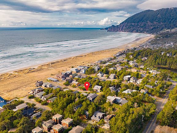 Great ocean view from the living room and expansive deck. Half a block to the sand on a quiet side street. Oversized lot with two big decks-- upper deck with views, lower deck is protected from the wind and surrounded by trees (perfect spot for a future hot tub?). Reverse floor plan. Slider from the dining room to the deck for easy indoor/outdoor living and dining. Primary bedroom on the main/upper floor enjoys Neahkahnie Mountain views. Beamed, vaulted wood ceiling lends an open feeling to the living area. Garage for all the beach toys, plus a garden shed. Enjoy just as you find it, or bring your plan to update and make it your own! Offered as is and furnished. Take a look at the video, 3-D walkthrough and photos here. Call your broker for an appointment to see in person.