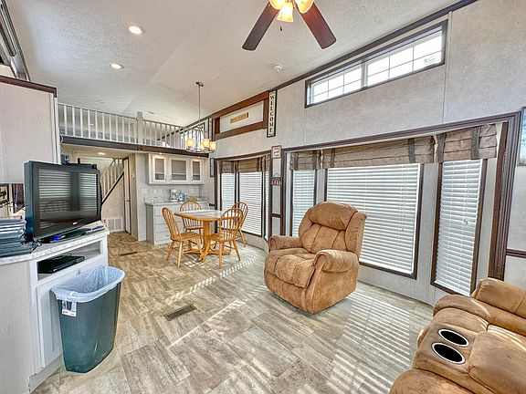 Looking for affordable lake living? This open an airy park model has just what you need! There is 1 bedroom and a loft area for sleeping, and an open living room/kitchen for everyone to gather, along with a spacious covered porch. Located in Midway (not zoned) and on its own deeded land, this property gives you plenty of options. There is a nice yard that is partially fenced and a paved driveway for parking. Call to schedule your viewing today!
