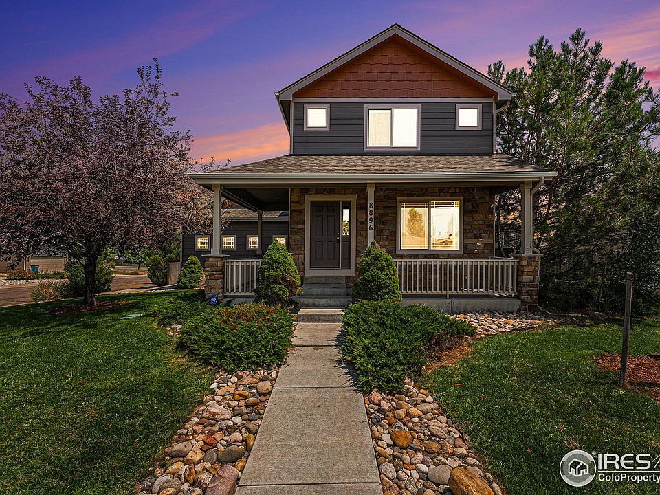 Great 3 bedroom and 3 bath 2 story home in the desirable Buffalo Creek neighborhood! Oversized 3 car garage at 661 sq ft and corner lot. Granite counter tops, upgraded appliances, wood and tile floors throughout, primary bedroom has walk-in closet and 5 piece master bath, gas fireplace, spacious main floor for entertaining, big kitchen island with eat-in area, sliding glass doors off of kitchen leading to the deck and backyard. Very close to parks, schools and just minutes away from downtown Wellington where you can find shops, restaurants and festivities. Come see this great home and enjoy living in Buffalo Creek!