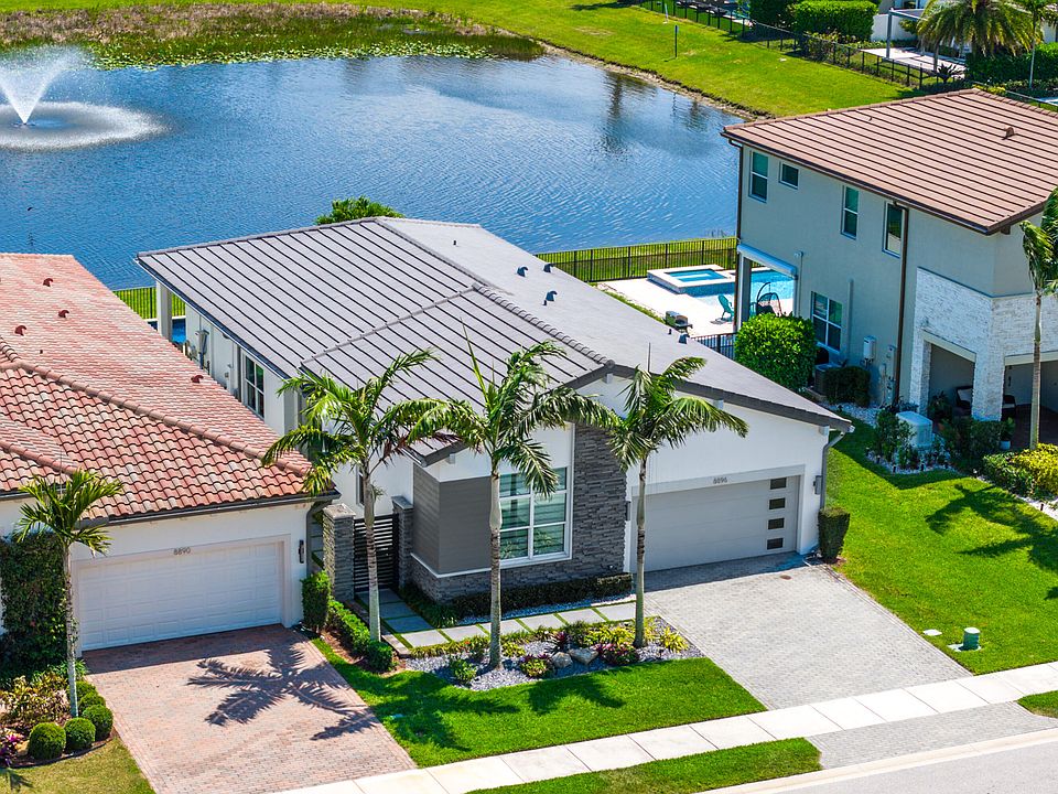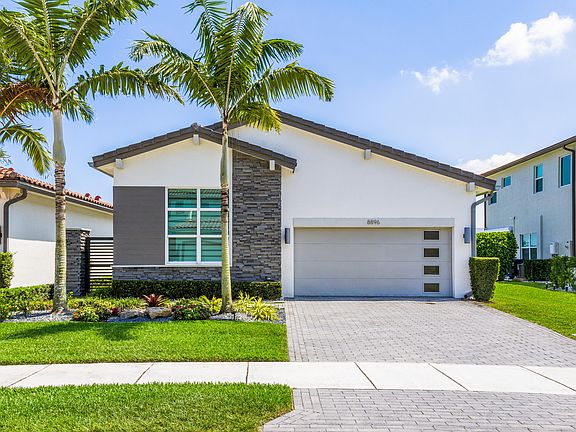 Absolutely MINT! Your 3bed/2bath dream home awaits in the desirable community of Andalucia. The moment you drive up to this 2018 newer construction single family home, you are immediately greeted by a sleek, modern design with a charcoal stacked stone wall feature, charming landscaping and a private, gated entry to your front door with slate concrete tiles & Astroturf inlay. Beautiful open concept living space with luxury vinyl flooring throughout the main living areas, volume ceilings and LED Lighting. Stunning kitchen with quartz countertops, coastal-modern tiled backsplash, high grade appliances, gas range, island with breakfast bar and plenty of counter / storage space. Impact windows and Sliders throughout providing a beautiful aesthetic that is safe and sound. (see more) Total dream backyard with a custom freeform heated pool, French pattern travertine deck, sizable overhang for entertaining and dining al fresco, overlooking the communities BEST wide premium lake Lot and providing the ultimate level of privacy. Master Suite overlooks the beautiful backyard with a generous bath featuring large dual vanities, grand stand-in shower enclosure with porcelain tailed walls, pebble floor finish and outfitted walk-in closet. This one-of-a-kind home also includes your own indoor laundry room, 2-car garage, Tesla charge hook-up, high baseboards and crown moulding throughout, custom blinds & more. Andalucia is a beautiful gated community in the heart of Lake Worth with a Low HOA, immaculate grounds & ready for its new owner. This one is... A must see!