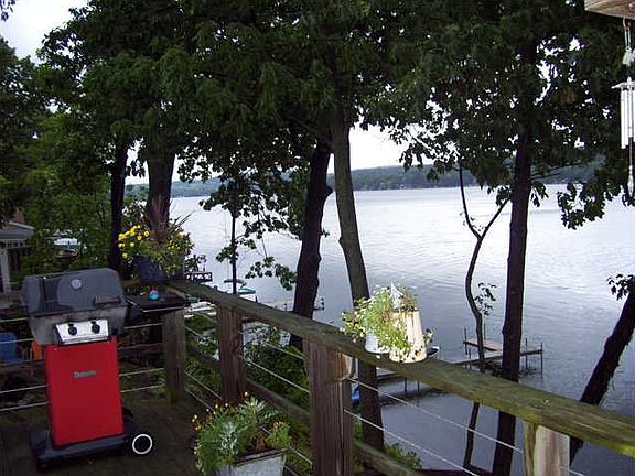 Enjoy year around living on the lake. 132 feet of water frontage. You can view one end of the lake to the other off this well built huge deck. Nice landscaped yard and even has a vegtable garden. Full walk-out basement. Come take a look, you will not be sorry