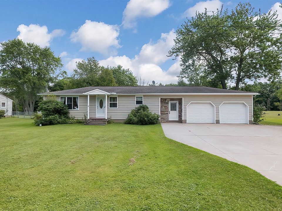 Beautiful well taken care of 3 bed/ 2 bath home. There is an open floor plan and clean sleek floors. The bedrooms are located on the right along with the full bathroom. There is another half bath and laundry area when you first walk in. The laundry area has a door to the cement patio and 2 acres of wildlife. Of course, in this area of the world the best part is the 2-car attached garage where you tuck them in and out of the weather. The garage also has a drive through for easy access when you need to mow. Finally, the basement is huge so you can store all your unnecessary stuff your kids will not want.