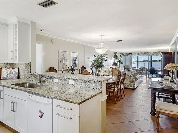 Large, stunning, ground floor, corner unit with European flare feels like a luxurious home away from home! Although there are 3 flatscreen TV's and 3 DVD's in the unit, you will be mesmerized by the glorious sun rises and delightfully entertained by the jumping mullet fish and the diving pelicans right from the master bedroom. The beautiful condo is also equipped with impact windows and sliding glass doors. After you relax in your modern, extra-wide tub in the master bathroom, enjoy breakfast on the lanai with a fantastic view of the bay or if you are in a rush, grab a quick breakfast at the modernized, beautiful granite breakfast bar. The Guest bedroom has a modern shower and twin beds which can be converted to a king. Last minute over-night guests? Two sofas (in the living room and lanai) are additional fold-out beds. Best part: your parking spot is directly in front of your door and the beach is only 3 walking minutes away! End your perfect day on Turtle Beach watching a spectacular sunset into the Gulf of Mexico.