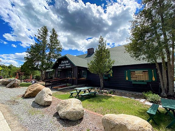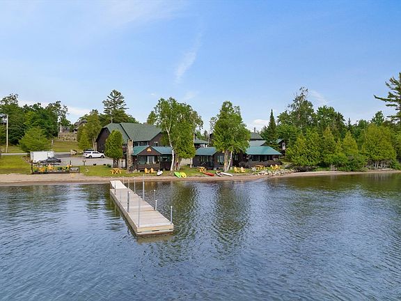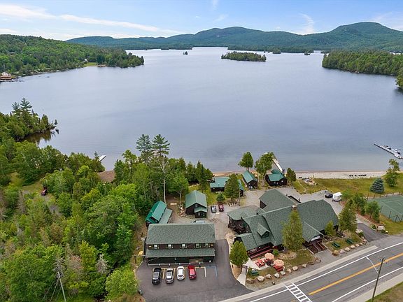 There are seven buildings associated with this offering. Four are waterfront cottages and a storage building. The Main Lodge has a huge granite fireplace in the 18 x 23 Entry. Off the side is an area large display or den area plus lobby. Inside the 30 X 60 vaulted ceiling Main Room another granite fireplace is located in one corner. A deck off the side of this room offers spectacular mountain and water views. The former kitchen has a tiled floor, a new catering kitchen and plenty of space to do what you wish. The Strong Rope Tavern is incorporated into the remaining space in the lodge including taproom indoor seating, men and ladies room, storage and access from it's own entrance. Four cottages sit along the sandy shoreline and could be rented or used for family lodging. Last is a beautifully renovated, 5 bedroom residence over a 3 stall garage with a laundry facility and office. The current owners have taken time to renovate and upgrade all electric and septic and roofs.