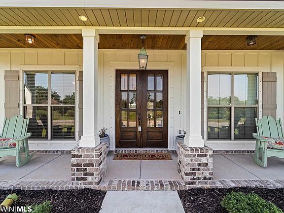 Welcome to sought-after French Settlement in Daphne! This over-sized corner lot features a Gold fortified "Mesquite" Truland house plan and is located across from the neighborhood pool. The inviting large covered front porch welcomes all! Upon entering the foyer, you notice the gleaming wood floors and the open concept. Dining Room is versatile and can be used as an office, bonus room or dining space. Living room features a brick gas fireplace, tall ceilings and opens to the kitchen as well as Dining Room. Kitchen has a large eat-in island, walk-in pantry, stainless appliances, granite counters and a spacious breakfast area. Master bedroom has wood floors, soaking tub, large tiled shower, double sinks and more! Split bedroom plan. Side entry double garage, fenced back yard, pergola, landscaping! Interior has been repainted! Must see today! Sellers are licensed realtors in Alabama.