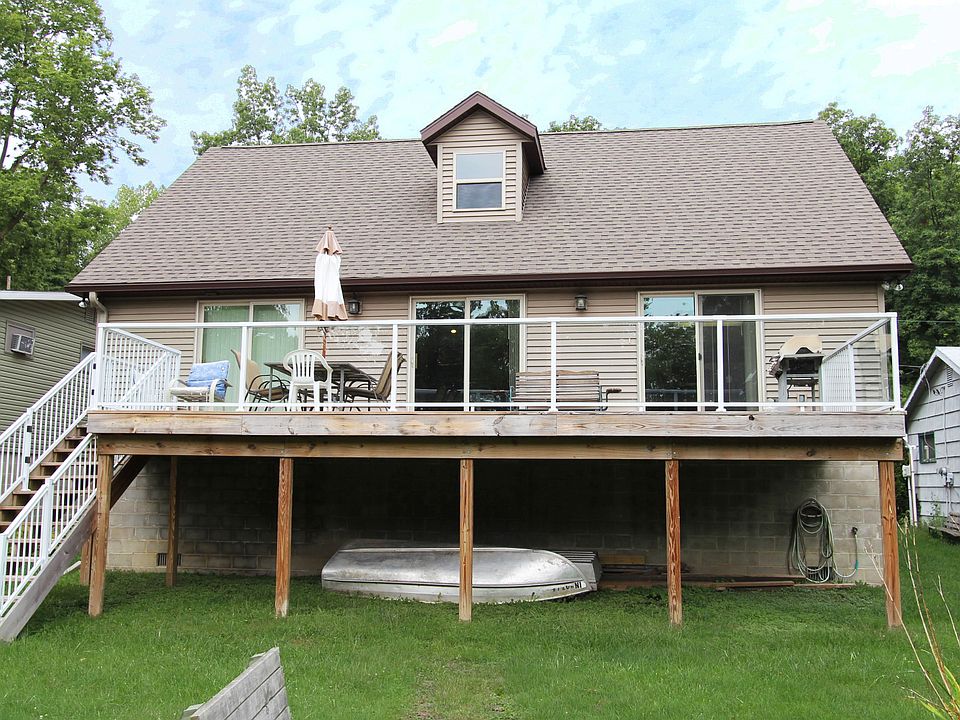Newer construcion Lake Shafer Home on a lake level lot. This home offers 4 bedrooms, 2.5 bathrooms, 1800 sq ft, 50 ft of lake frontage with a steel seawall, large open concept living room & kitchen, huge deck accessibly by 3 sliding glass doors and more! Beautiful lake setting, plenty of space for family and friends, and low maintenance makes for the ideal lake get-away or year round home. See Virtual Tour!