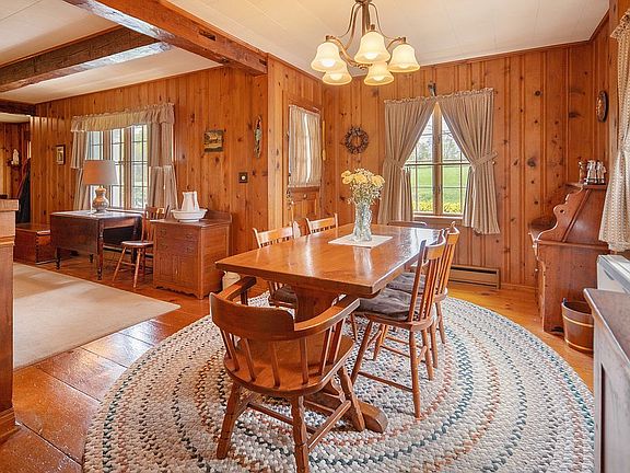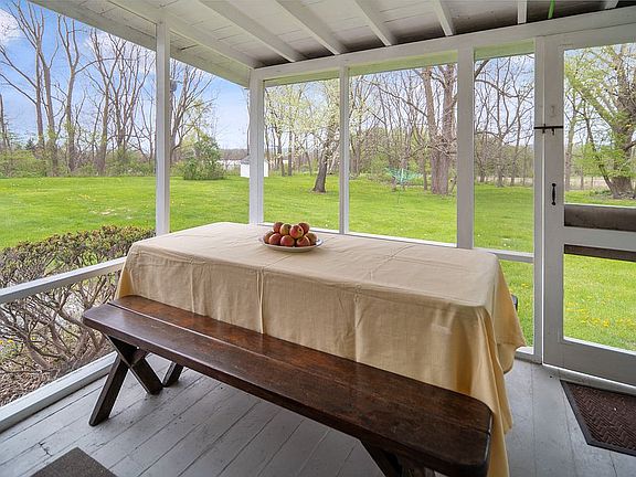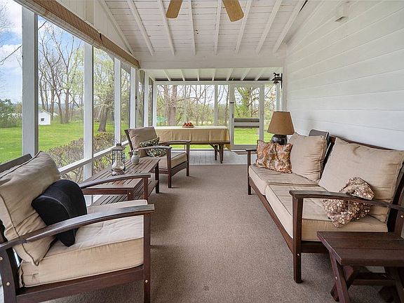 Well cared for and lovingly occupied 3 bdrm/1 bath farmhouse on 4 acres in a semi-rural location between Trumansburg and Interlaken. Spacious partially wooded lot provides natural privacy. Beautiful woodwork throughout including tongue and groove wall planks and exposed beams accentuate the natural character of this charming farmhouse. Stone wood burning fireplace in the living room makes for a great place to congregate on a cool Finger Lake's night and also gives a convenient supplemental heat source. Additional family room, two bedrooms and a full bath on the main level and a large bedroom and an oversized bonus room on the upper level. Spacious screened in porch provides a great covered outdoor space for leisure or entertainment activities! Large two car detached garage with extra storage space. Centrally located to Ithaca and Trumansburg.