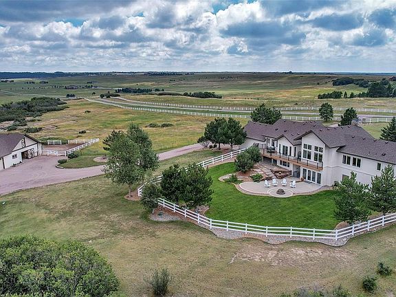 Custom built dream equestrian estate, nestled in the prestigious gated community of The Meadows at Castlewood. Offering unparalleled privacy and panoramic mountain vistas including Pikes Peak, this property is the epitome of a Colorado ranch. Vaulted ceilings, wood beams and rock fireplace accent the great room. Kitchen is outfitted with soapstone countertops and new appliances including refrigerator, dishwasher, and wall ovens. Breakfast nook features access to the new in 2017, maintenance free deck thru the new Pella sliding glass door. The primary suite is a retreat with 5-piece bath & dual walk-in closets. 2 add'l bedrooms & full bath in the bsmt. Entertainment flows effortlessly from the wet bar in the walk-out basement out to a private patio set amidst mature landscaping, cozy fire pit and lush lawn with automatic sprinklers. A testament to the equestrian lifestyle, the property boasts a fully appointed 6-stall barn complete with giant hayloft, heated tack room, horse wash area w/ hot and cold water and sanded riding arena. Fully fenced pastures, paddocks & loafing shed ensure that horses will be living the good life too. Discover the abundance of space in the light-filled, unfinished portion of the basement, complete with built-in shelves and ample room for a workout area, games, & additional storage. While two oversized, two car garages add convenience and space for your cars and other toys. Noteworthy updates feature the new class 4 roofing and exterior paint on both house and barn. Peace of mind is also found in the new in 2020, upgrades that include a “smart” high efficiency HVAC, Navien tankless water heater, whole house and barn Generac generator, fueled by a 1000 gallon, underground propane tank. The community offers four miles of paved roads and easements for horseback riding and each home is a minimum of 35 acres. Secluded while within easy reach of supermarkets, vibrant shopping, & dining options in Castle Rock, Parker, and Elizabeth.