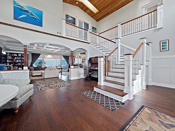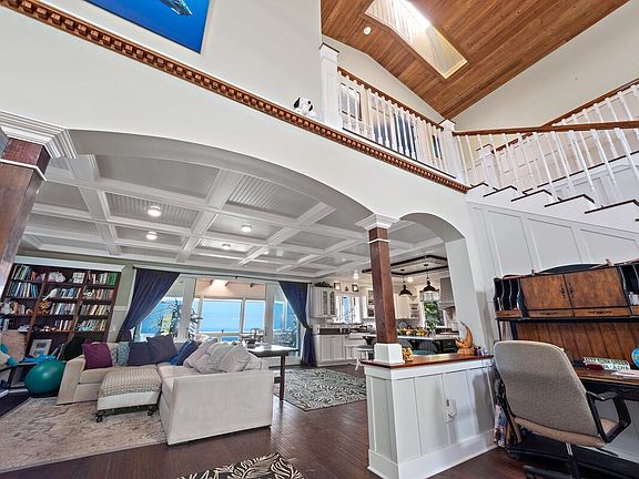 Escape to your dream life on the Big Island of Hawaii! Discover a stunning and exclusive 7-acre property, boasting unrivaled charm and countless business opportunities for those seeking a fulfilling life off the land. Immerse yourself in the beauty of a meticulously remodeled custom Hawaiian-style farmhouse, featuring breathtaking high vaulted open box beam ceilings, built-in bookshelves, and exquisite detail of wainscoting and coffered ceilings. Rich hardwood floors flow throughout the house, while the enclosed lanai floors showcase large tiles and ocean views. The large chef's kitchen is a culinary haven. Stunning granite countertops, top-of-the-line stainless steel appliances, and meticulous custom craftsmanship.