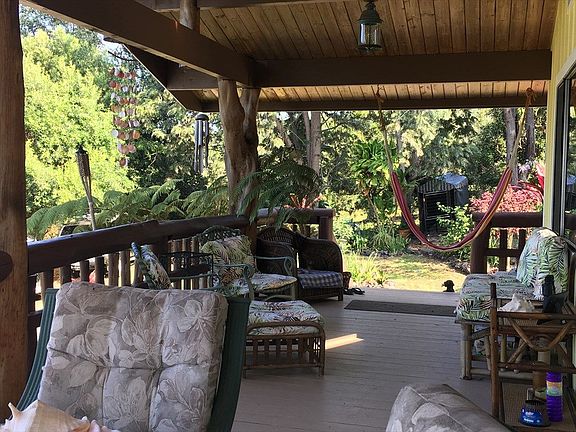 Welcome to the Country Lifestyle and this adorable home sitting on a picturesque, beautifully landscaped 1.00 parcel in South Kona with ocean views. Escape the heat and humidity of Kona and enjoy the comfort and beauty of this home sitting at just about 1900 ft. elevation. This beautiful home was remodeled in 2015 and includes newer stainless steel appliances and newer Whirlpool Duet front loading washer and dryer. High end granite in both kitchen and bath room. Granite installed by Gary Davis Tile and Marble. All new designer paint inside and the outside was painted in 2015. The home also features all open beam vaulted ceilings with nice cupola in center of living room. Warm knotty pine throughout this home creates an earthy and comfortable environment. There is also a hand crafted Ohana with a loft, beautiful bathroom and kitchenette for your guests. The Ohana was converted from a double car port. The structure is permitted but the improvements are not permitted. Enjoy the sunsets, outdoor living and dining on your spacious lanai's. All lanai's feature railings are built of Ohia logs to add the Hawaiian flavor. The 1.00 acre parcel includes bananas, papayas, citrus trees, Jacaranda, and Ohia, as well as some coffee trees. The lush landscape also includes a variety of tropical, exotic flowering plants and trees such as Bird of Paradise, Hibiscus, Lavender, Anthurium, and the list goes on. If you are looking for a beautiful, peaceful country home, this is the home for you.
