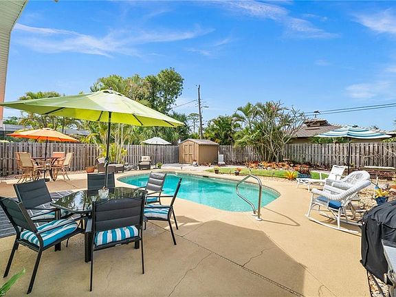 This home is a BOATER'S DREAM! Centrally located in a beautiful neighborhood west of Vanderbilt Drive, this Bonita Shores single-family pool home offers the perfect blend of comfort, convenience, and lifestyle. Set within a top-rated school district and just minutes from world-class dining, shopping, and entertainment, the location couldn’t be more ideal. You’ll love being so close to the pristine white sand beaches of Bonita Springs and Naples, making this property a true coastal retreat. Inside, the home offers 3 bedrooms, 2 bathrooms, and 1,567 square feet of thoughtfully designed living space on a 0.19-acre lot. A split floor plan provides privacy for the primary suite while maintaining an open and inviting flow throughout the main living areas. Step outside to your private in-ground pool, a spacious uncovered patio, and a fully fenced backyard—perfect for relaxing, entertaining, or enjoying the Florida sunshine in total privacy. This property has been well maintained with important updates already taken care of, including a newer roof (2017), pool heater (2017), whole house re-pipe (2020), and a new AC system at the front of the home (2024). Plus, this home is NOT in a flood zone! Owners do have flood insurance in place which can be transferred to the new owners if desired. ADT system in place, can also be transferred to new owners. Boaters and water sport enthusiasts will especially appreciate the option to join the community’s private Bonita Shores Boater’s Club, which provides access to a dedicated boat ramp and a clubhouse with a year-round social activities calendar. Skip the hassle of public boat ramps and enjoy easy Gulf access—just minutes away by water! With no HOA fees, Bonita Shores remains one of the most desirable and flexible neighborhoods in the area. Whether you’re poolside at home, exploring Naples and Bonita Springs, or cruising the Gulf, this property puts you close to everything. Don’t miss your opportunity to call this Bonita Shores pool home your own!
