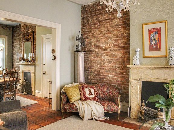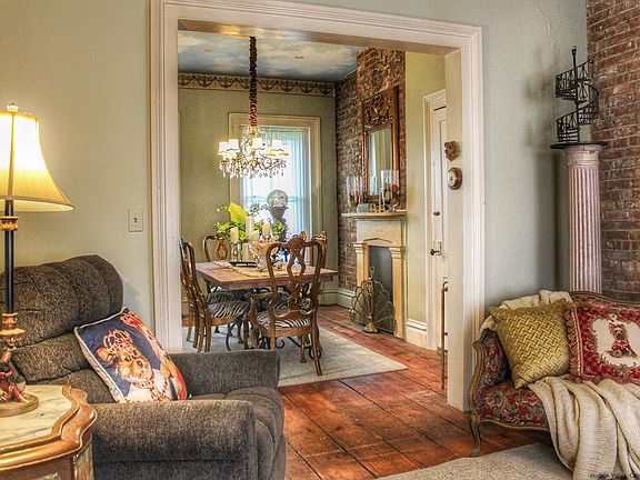 This charming 1850 brick 3-family home is nestled in the heart of Kingston's historic Rondout area. Steeped in history and filled with character, this property is the perfect blend of past and present, offering an ideal opportunity for owner occupancy with a monthly income. This home is a testament to timeless architecture, with its brick exterior that has stood the test of time. As you step inside the owner occupied side of the building, you'll immediately notice the exposed brick walls that harken back to a bygone era. These walls not only tell a story but also provide a unique and warm ambiance that's hard to replicate. The first floor has 10' ceilings, wide-board wooden floors and ornamental fireplaces in both the living room and dining room. The second floor has the full bath, primary bedroom as well as another room that could be a bedroom but is used as a sitting/media room. There is an additional smaller room which is being used as a walk-in closet. The third floor has two large guest rooms in addition to two smaller rooms that could be utilized for many different things (ex: office, studio, nursery, closets or perhaps an additional bathroom).