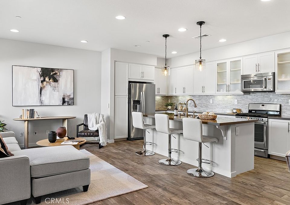Introducing a breathtaking 3-bedroom home nestled in the award-winning community of Rancho Mission Viejo. This gorgeous 3 bedroom and 3 bath is located in the Lyon Villas tract of Sendero which means half of the Mello Roos of Esencia. With 2 full bedroom suites upstairs and one bedroom and full bath downstairs, this home is the epitome of convenience and luxury. From the moment you step inside, you'll be captivated by the model-like presentation. The open floor plan, adorned with stunning wood-like tile flooring and flooded with natural light, creates an inviting atmosphere perfect for entertaining. Two spacious patios extend the living space outdoors, offering ideal spots for relaxation and al fresco dining. The first level boasts a large bedroom and full bath, providing flexibility and convenience for guests or family members. The impressive kitchen is a chef's dream, featuring a well-designed layout with a central island for food preparation and casual dining. Stainless steel appliances, including a microwave, oven, dishwasher, and refrigerator, elevate the culinary experience. Designer light fixtures, recessed lighting, and multiple cabinets with bevel-styled glass add to the kitchen's allure, while quartz countertops and a striking backsplash tie everything together seamlessly. Enjoy picturesque hillside views from various vantage points throughout the home. The master bedroom suite is a sanctuary of comfort and style, boasting high ceilings, a spacious walk-in closet, custom window shades, and more. The master bathroom complements the suite with its separate water closet, spacious shower, large tub, dual sinks, and impressive tile counter. Convenience continues with a two-car garage equipped with cabinets, overhead storage, and lots of space for all your other needs. Exclusive to Rancho Mission Viejo residents are all amenities in the Villages of Sendero, Esencia and future Villages. There are community amenities for all from breath-taking resort-style pools and spas, Esencia school K-8, community farms, fitness centers, guest house, putting green, bocce ball courts, tennis and pickle ball courts, playgrounds, coffee shop, fire pits, an arcade and so much more!