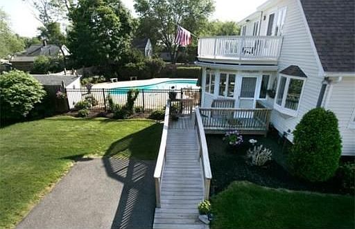 Exceptional property that cannot be duplicated for the $$. Downsizing Owners offer their pride of ownership home, w all the bells and whistles. Sunfilled 10 room expanded cape with open floor plan. C/A Move in condition ! Delightful kitchen w glass walled breakfast room. First floor bedroom, if desired. Vaulted ceilings. Sparkling free form gunite pool, enhanced by lovely perrenial gardens and velvet lawns,sprinkler system. Glassed gazebo w electric. Short walk to beach, shopping & restaurants.