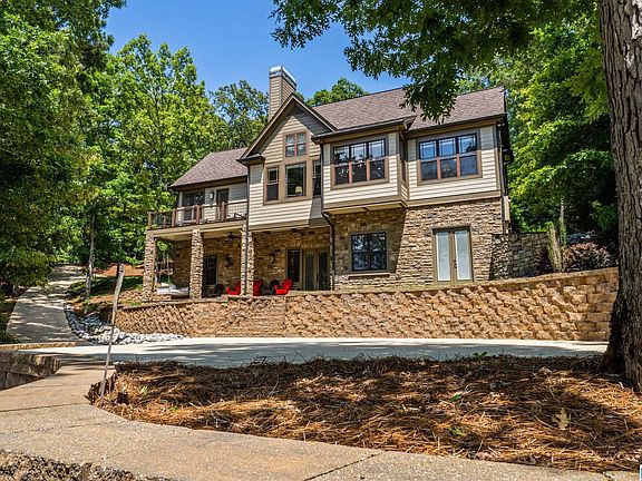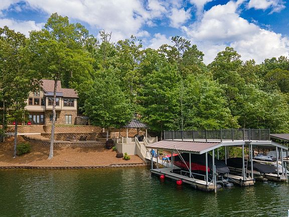 Luxury on Lake Wedowee! This custom-built home on the South end in Hunter Bend Subdivision has it all! A one-acre lot that has two gated driveway entries, sits beside the neighborhood boat ramp, state of the art seawall and retaining walls that create an effortless way to enjoy the space with very few steps to 143' of year round water. Outdoor amenities include a firepit, gazebo, double decker dock with two boat slips-both with lifts, a sundeck, and jet-ski ports. The home has 5 bedrooms, 4 full bathrooms, vaulted ceilings, two separate living spaces, kitchenette on the basement level, and high-end finishes throughout. Selling furnished. Truly a MUST SEE!!