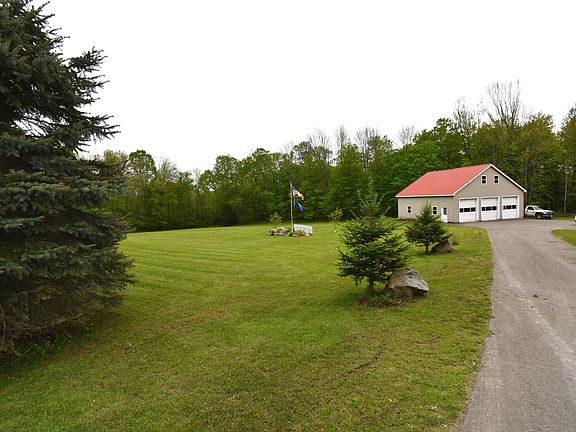 Beautifully remodeled Cape sits in a nice country location, back from the road with a paved driveway on a well landscaped 6.3 +/- acres that offers exceptional lawn and some great wooded area as well. This exceptional home boasts charm throughout and offers 3-4 spacious bedrooms, 2 .5 baths, a kitchen with a farm sink, plenty of storage and granite counters, and a covered porch and open deck right off the kitchen and living area. Great for enjoying an outdoor meal or just relaxing. There's more great features and living space in the partly finished basement that leads to an attached oversized one car garage, So many possibilities! And, there's a huge oversized 3 bay garage with storage overhead. This property offers so many special features, it's the must see you've been dreaming of!