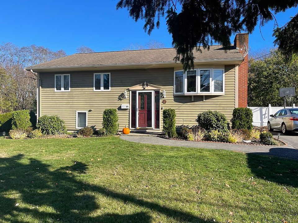 Do not miss this one! Beautiful Raised Ranch w/ three beds and 1.5 baths.  Outstanding oversized flat, level backyard for kids or pets- picture yourself hanging out by the fire pit.-- Fully Fenced In back yard.  Dining room, Living room with white washed fireplace and Wood Stove. Outdoor concrete deck from kitchen with large enclosed storage underneath. Tiled basement with 1/2 bath (re-done roughly 4 years ago) Oversized closet also in walk-out basement & New Generator hook-ups. GAS HEATING and COOKING! CENTRAL AIR. Freshly painted all but one room.Hardwoods in all bedrooms. Slider off kitchen out to deck. Close to all Major highways and shopping.Shed built in 2011 with lights and power outlets. Roof approximately 15 years old. Title 5 Just completed and passed.