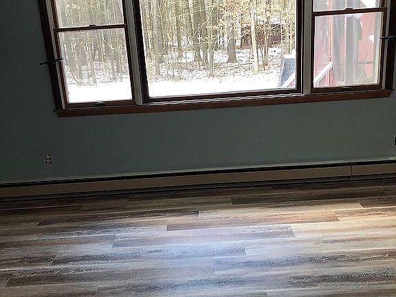 The moment you step inside this exceptionally maintained raised ranch you'll want to move right in! A brand new front deck leads you to the welcoming foyer that leads you up to the bright and open kitchen/living/dining area with a bonus 4-season porch just off the dining room, as well as the master suite and 2 large bedrooms. Downstairs you'll find a cozy yet large family room with barn wood beams and a bar area - perfect for entertaining guests and family - and 2 additional bedrooms and the laundry room. Two massive stone fireplaces in each living room add ambiance on cooler days and nights. The home sits off the road and provides a large yard as well as peace and serenity among the surrounding woods.