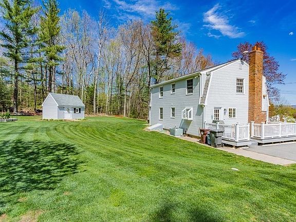 Pride of ownership shows here! Extremely well maintained vinyl sided 3 bedroom dutch colonial gambrel set on 1.5 acre lot with great curb appeal! This home has so much to offer and features an Updated Granite Kitchen with Breakfast Bar, Central Air, Resplendent Hardwood Flooring Throughout, Open Floor Plan, Security System, Living Room with French doors out to a beautiful Paver Patio, Brick Fireplace, 2 Full Baths, Master bedoom w/vanity & sink, Trex Deck, Shed and Flag Pole! Seller leaving Kitchen Appliances, washer & dryer for buyers enjoyment. Whip City Fiber! Passed Title V in hand.