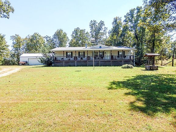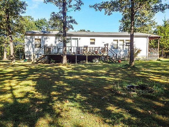 Enjoy the best of both worlds...a quiet country lifestyle AND lake fun at your fingertips! Park-like 15 acres with big fenced garden, garage/shop building & Bull Shoals Lake only about 1/2 mile down the road. Perfect combination to vacation now & retire later! Very well-cared-for manufactured home has 3 bedrooms (2 have walk-in closets) & 2 full baths. Roomy living room has wood burning fireplace. Separate dining room with patio door leads to rear deck. Nice-sized kitchen with breakfast area has island, many cabinets, pantry closet, range, refrigerator, built-in spice rack. Handy utility room includes washer & dryer. Many ceiling fans throughout, central electric heat & air. The wonderful, full-length front covered porch (55'6" x 7'10") is perfect for rocking & relaxing. The open, rear deck (23'9"x 14) overlooks the pretty & level tree-shaded backyard. There's also a covered side deck (15'9"x 5'). Concrete slab & concrete block foundation. The garage shop is 32'x 24' with concrete floor, wood heater, electric plus has a 12'x 32' lean-to for added storage. Large fenced garden spot. And, attention lake lovers, beautiful Bull Shoals Lake is only about 1/2 mile down the road for fishing, boating & swimming. RETIRE HERE & BE ON VACATION YEAR AROUND!