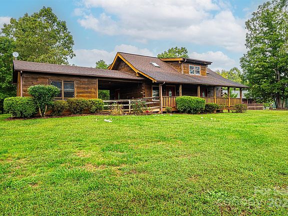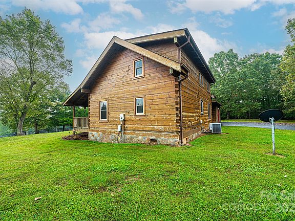 Log cabin home located in beautiful Nebo NC. Wonderful views of the mountains from the front porch. 1589+/- sq ft, over 2 acres of land, paved driveway, detached garage, and room to expand. Built in 1995, square log style home with lots of knotty pine tongue and groove inside. Original wood floors throughout along with carpet upstairs and linoleum in kitchen/bathrooms. Large bedroom located on main along with full bathroom. Upstairs has an additional bedroom and full bathroom along with large loft area that could convert into more rooms if needed. Additional room beside carport (400 sq ft) could easily be finished to add another suite, office, garage, or game room. Mature hardwoods are scattered throughout the back with an abundance of wildlife. Short drive to I-40, Parks, shopping, dining, and picturesque Lake James!