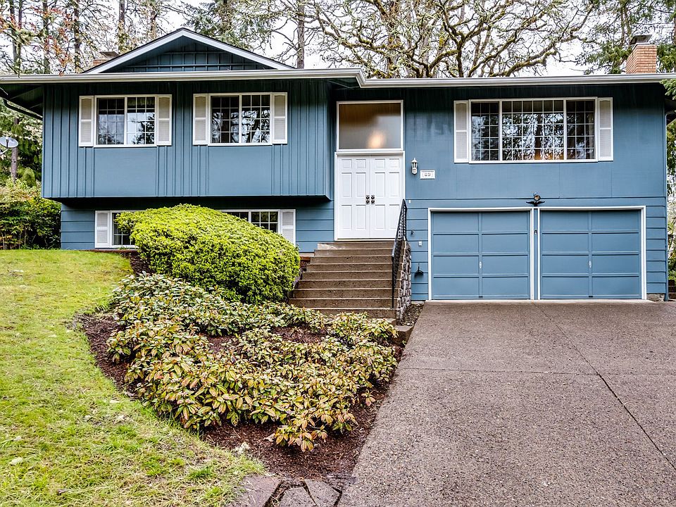This house was custom built with double wall construction. South facing Wall size window brings in Peaceful views of tall trees & hilltops. Private, sunny back yard backing to the open field (No house behind). EWEB weatherization done with double pane windows. Good separation of space with Two fireplaces. Extra guest parking spaces next to the house. Prime location in Highly ranked public school district, near shopping center, walking trails, public bus service. Furnitures are included in a sale